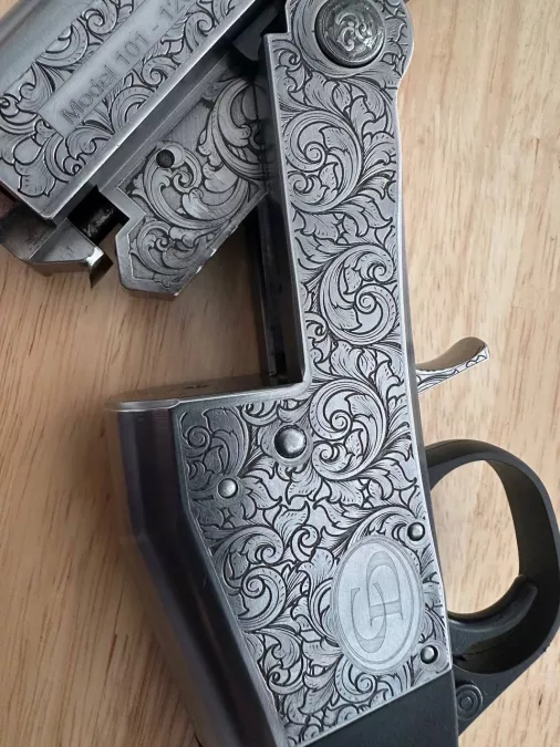 This isn’t your average scattergun. I’ve taken a Chiappa Charles Daly Model 101 12-gauge and stripped it down to bare steel, then covered it in detailed custom scrollwork engraving. The result is a unique piece that looks like it belongs in a high-end collection, while still being ready for the field.