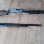 Hello, I have a Winchester model 12 for sale, it comes with a extra barrel which has an adjustable choke. The bluing on the receiver and short barrel, which measures 19 in. long is completely gone. The bluing on the 27 in. barrel is very good. It takes 2 3/4 in. shells. It works like it should and you really have to rack the slide with the shorter barrel. Shipping available on your dime. Pal is a must and will be checked and verified. Thanks
