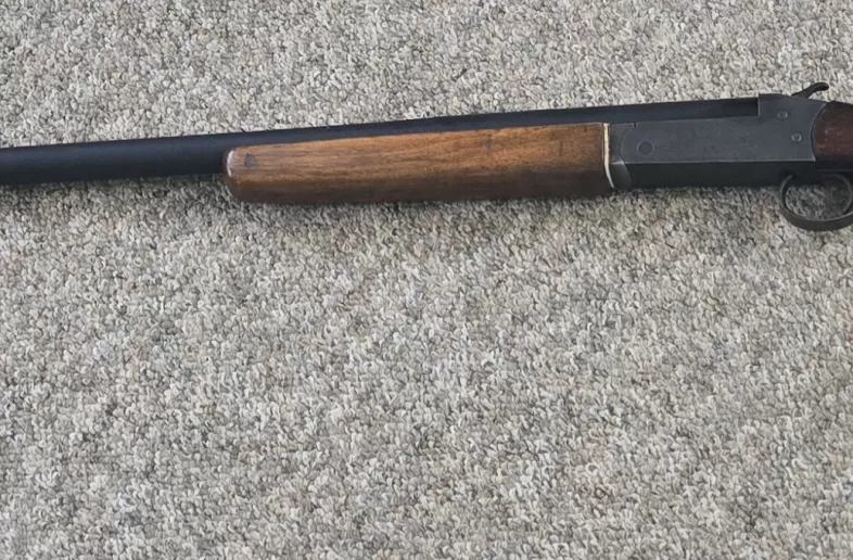 Cooey 12ga that has outside metal pitting and painted black. Good bore and action, typical Cooey tang cracks. 125.00. Local sale only with valid license