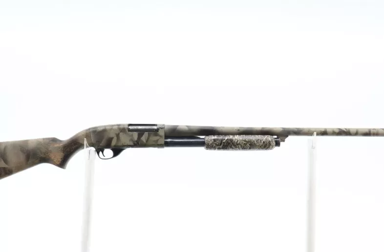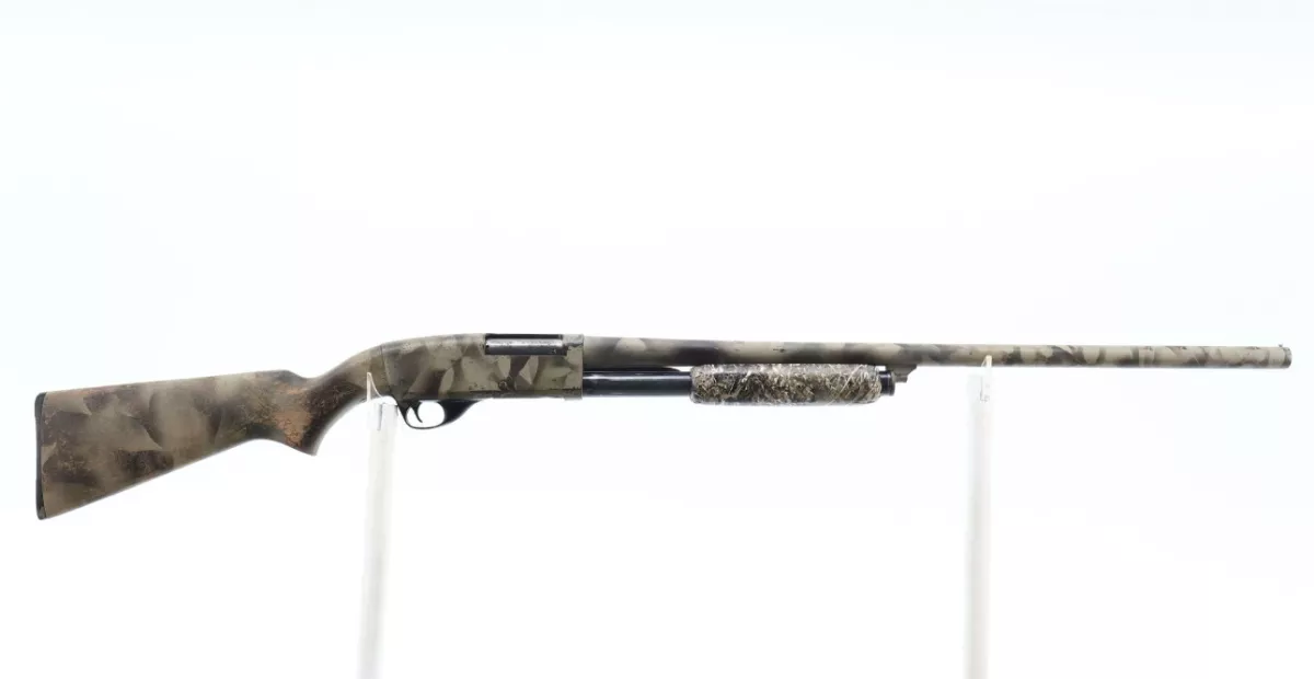 - Stocks: Two-piece wood stocks. The grooved forend has Duck Blind Camo Tape applied (removable if you prefer). The pistol grip stock has marks, scratches, and wear consistent with field use.