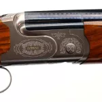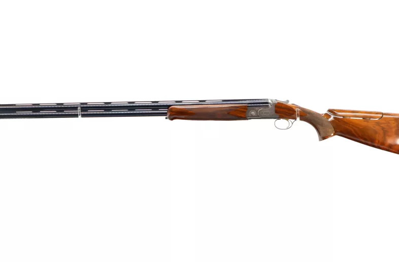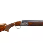 Main Description: White front and brass mid rib beads, polish blued vent rib barrels, silver engraved receiver, manual selective safety, ejectors, checkered single gold inertia trigger. Two piece wood stocks, Schnabel forend tip, checkered forearm and pistol grip with left hand palm swell cracked and repaired with brass pins, adjustable cheek rest, black rubber recoil pad, 15" LOP. Note: Stock is cast off (to the left) with small crack behind receiver. Accessories include: Spare Skeet, IC, IM, LM, LF and Full Chokes with Wrench and Cases. Spare Cheek rest spacers.