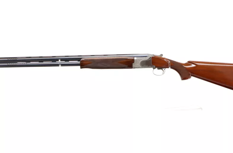 Main Description: White front bead, blued vent rib ported barrels, engraved polished and matte silver receiver, manual selective safety, ejectors, adjustable single silver mechanical trigger. Two piece wood stocks, checkered forearm and pistol grip, brown rubber recoil pad, 14.25" LOP