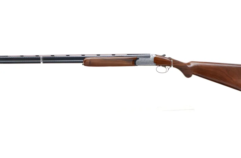 Main Description: Brass bead, polished blued vent rib barrels, round body receiver, low profile frame with Ornamental Scroll engraving, manual, selective safety, ejectors, single silver mechanical trigger. Two piece Satin finish Turkish Walnut stocks, checkered forearm and Prince of Wales grip, grooved wood butt plate, 14.75" LOP. Accessories include: Soft Case, Spare IM, Mod and Full Chokes with wrench and case.