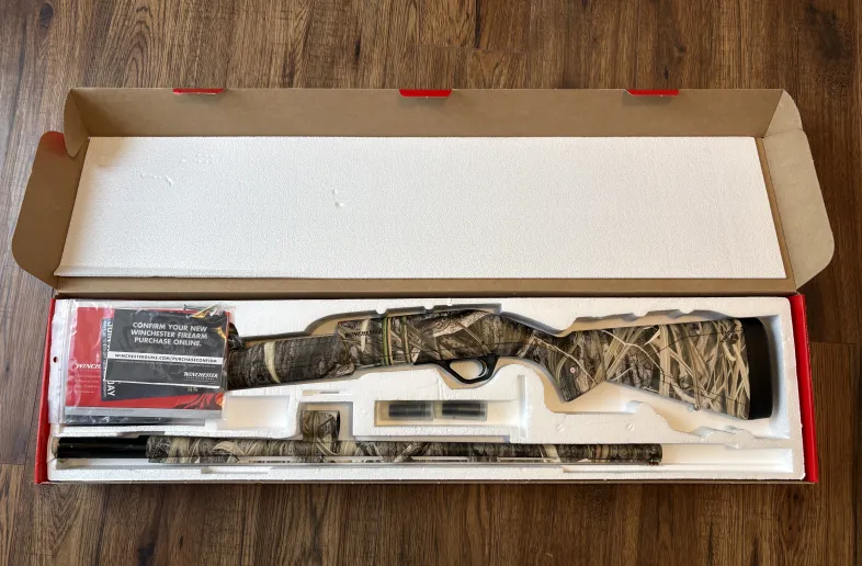New in box Winchester SX4 20ga semi-auto shotgun, 3-inch chamber, 26-inch barrel, MOSGH camo. Bought new in November, never used. Comes with all the OEM stuff, three investor-plus chokes (F, M, IC), LOP extension, lock, manual, box. $1350 picked up. $1425 shipped.