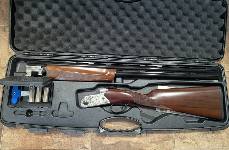 HUGLU 103AG 12g over under. This is a beautiful gun. Was a special order into Canada 1 of 1. 28" barrels with 3" chamber single trigger. Ejectors. Only weighs 6lb. Was only test fired. Gun is in new condition. Comes with hard case. 5 chokes. And manual. $2000. PAL is required. Thanks.