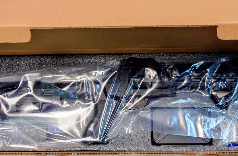 Includes: 3 chokes, angled foregrip, flip-up iron sights, hunting plug kit