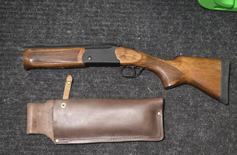 Selling SS-211 O/U 12 gauge shotgun with leather Holster.