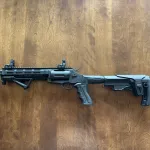 Stock is extendable and has an adjustable cheek riser, The Flip up sights are fully windage adjustable without tools and snap up and down at the press of a button to go between the 2 sight options and can be easily removed to throw on a mounted optic.