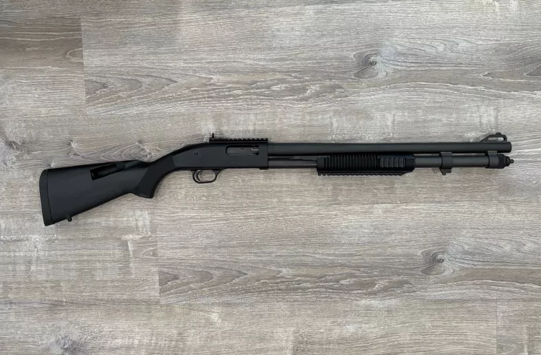 For sale I have very rugged Mossberg 590A1 with 12 GA in Speed Feed polymer stock and 20" heavy walled barrel and XS Ghost Ring rear sight. The shotgun has a very few faint handling marks and it doesn't appear it was fired before, just operated the slide a few times with snapcaps. I decided to go with 14" version of this 590A1 shotgun.