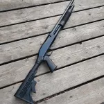 Mossberg Maverick 88 Security Model with an aftermarket adjustable M4 style buttstock and pistol grip. Great shotgun, well taken care of, the most reliable shotgun I've ever owned will eat and cycle anything.