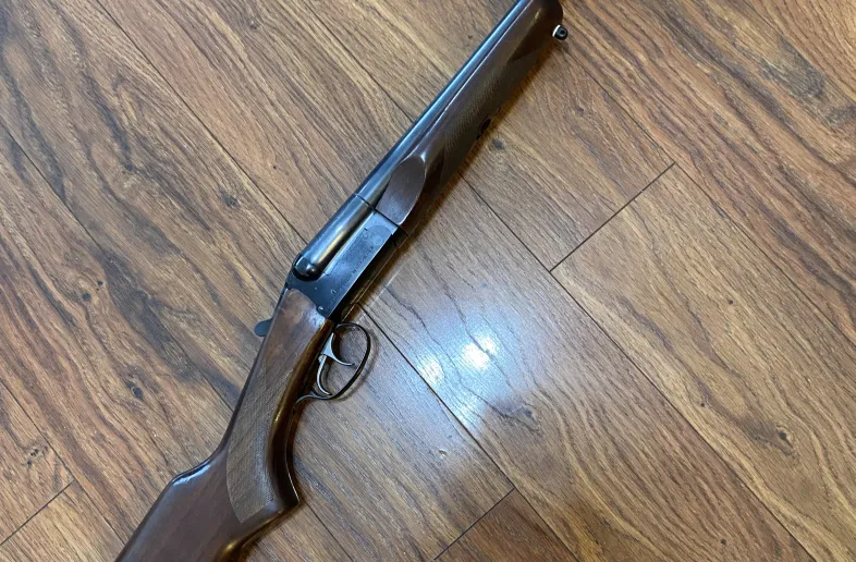 A beautiful Brazilian made 20 gauge coach gun with 20 inch barrels side by side, beautiful wood & checkering, bright perfect bluing, has fired less than 6 rounds, has the look of a far more expensive shotgun for sure.! Everything works... . !