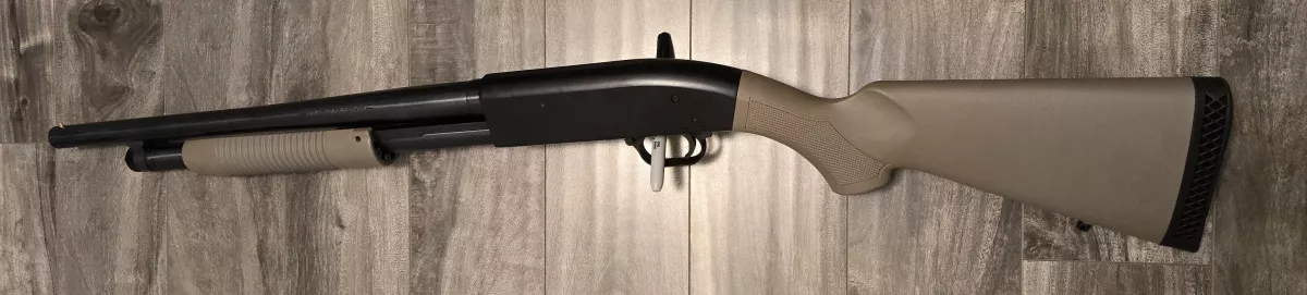 #37 mossberg maverick 88 security with tan or flat dark earth furniture. In very good condition. Only 25 rounds or so through it. 18.5" barrel.