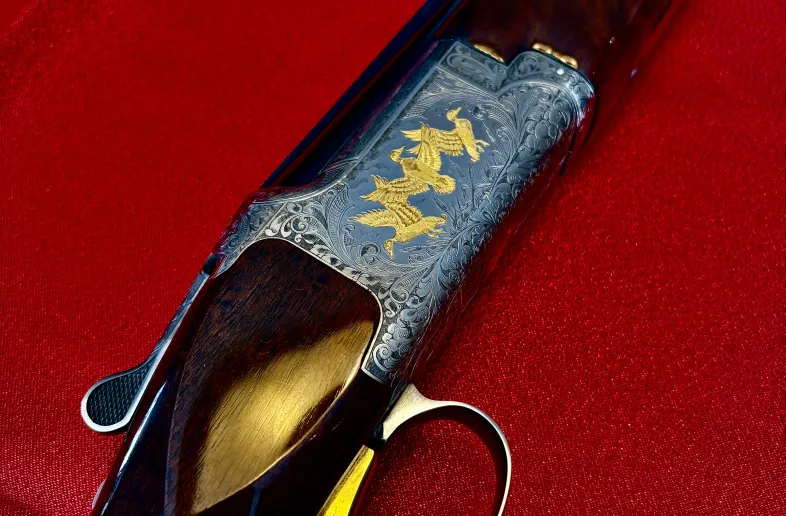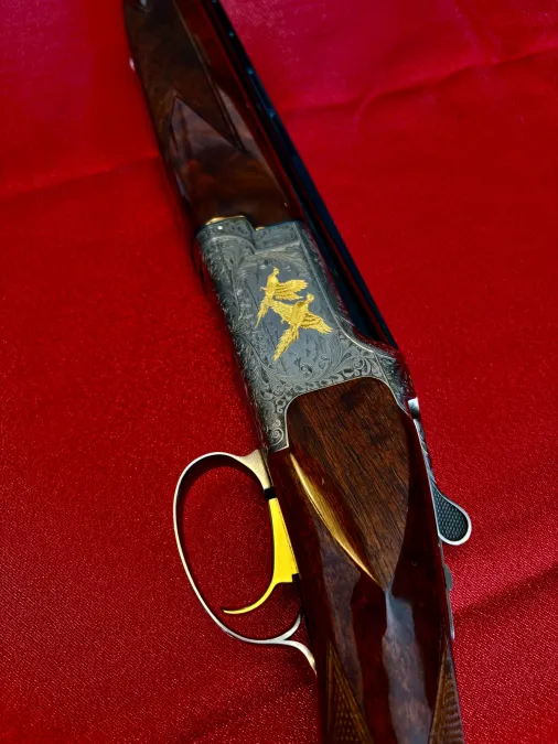 spectacular engraving, spectacular grade 5 wood. Invector chokes improved, modified, and full. 26” barrels.
