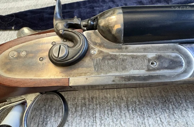 Like new (no box) Pedersoli Wyatt Earp coach gun, exposed hammers, 12 gauge. Comes with two velvet-like sleeves for storage and an informational CD from Pedersoli