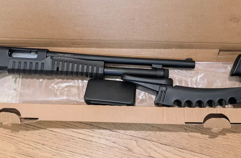 Shotgun has less than 50 rounds fired. It shows as new in original box. Includes 2 stocks, pistol and folding. Also includes choke set.