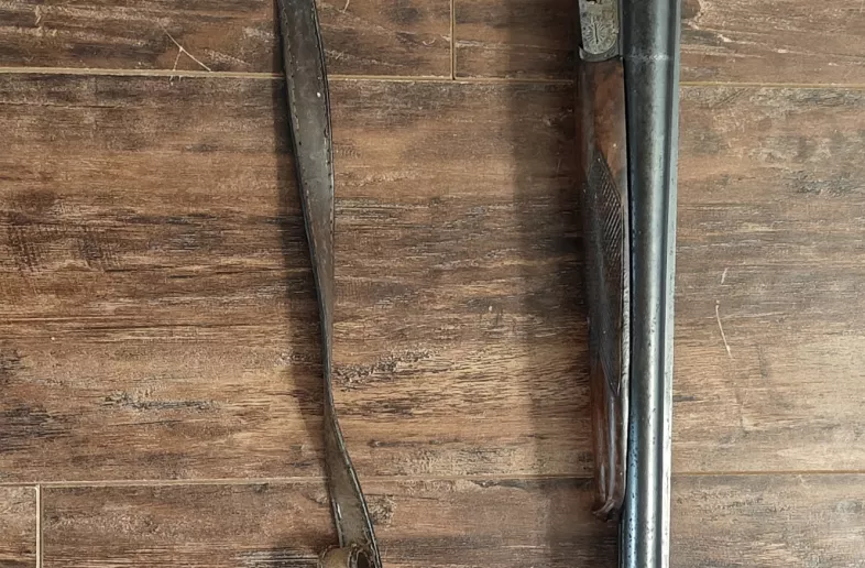 Furniture is in decent shape. Chambers are clean other than rim seats. Bores are a little rusty near chambers. Breech faces are very pitted. Hammer indicator on right side is missing. Sling is in decent shape.