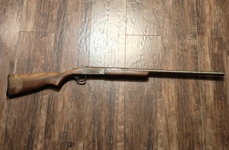 Bore is okay, forend has slightly split, is loose, and repaired with threaded inserts. Metal has been stripped at some point and is now slightly rusted. Barrel is tight on face.