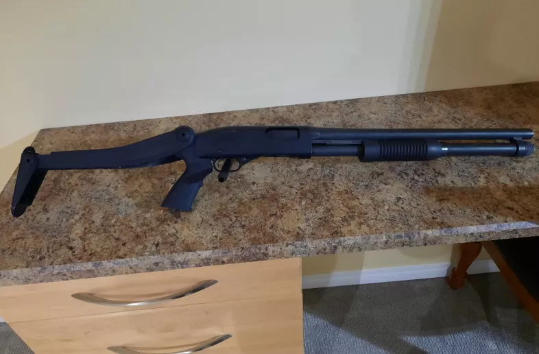 Winchester model 1300 speed pump shotgun. Comes with folding stock and original pistol grip. Fits perfectly in backpacks. Barely Used. Takes 2 3/4 and 3" shells. Sorry no shipping.