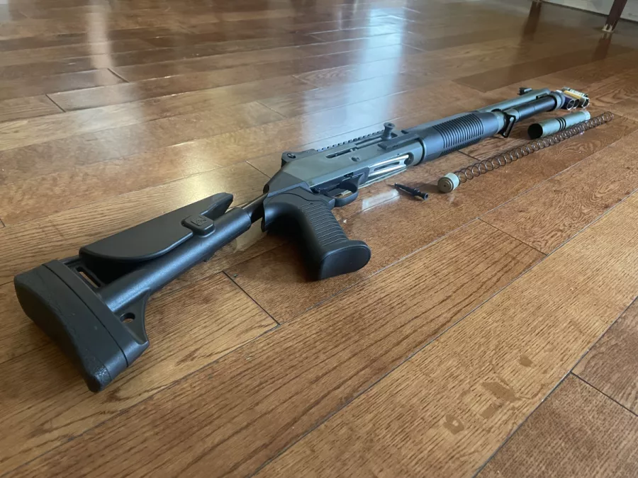 Comes with a full set of chokes (Five), 1 Five round velcro shotgun card.