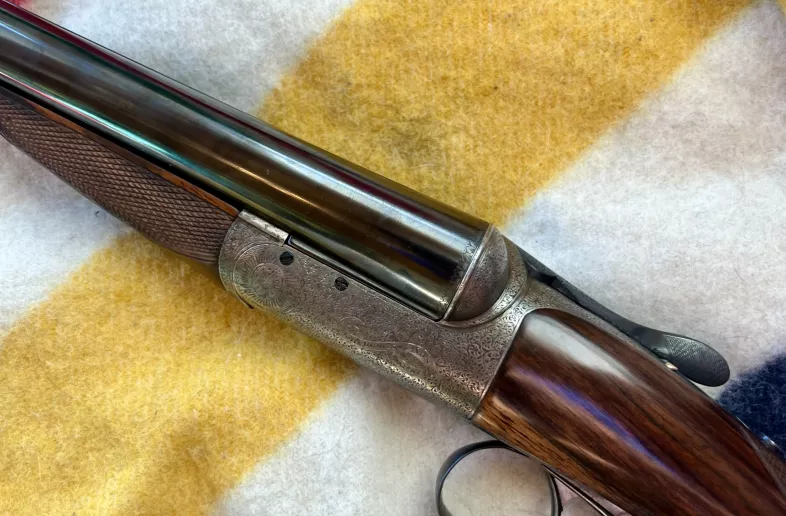 Available here is what I am sure is the only one in Canada available at the moment, is a beautiful piece of functional art in its original motoring case Barrels were sleeved by Dickson and ring true, engraving is beautiful and crisp, stock was recently re done for very modern and shootable specs, must have cost a fortune! Gauge: 12 Barrel Length: 27in Chambers: 2 1/2" Chokes: 1/2(R) & 3/4(L) Ejectors work perfectly Stock Dimensions: Drop at Comb 1 3/4", at heel 2 5/8, LOP: 15 7/8 to heel, 15 3/4 to center and 16 1/4 to toe Cast for right hand shot by 1/2" Weight 6lbs 9OZ Message for photos!