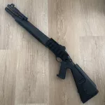 Mesa Urbino stock and Mod 2 forend. Aridus tube extension with barrel clamp and gasket, Aridus follower. Esstac shell cards.