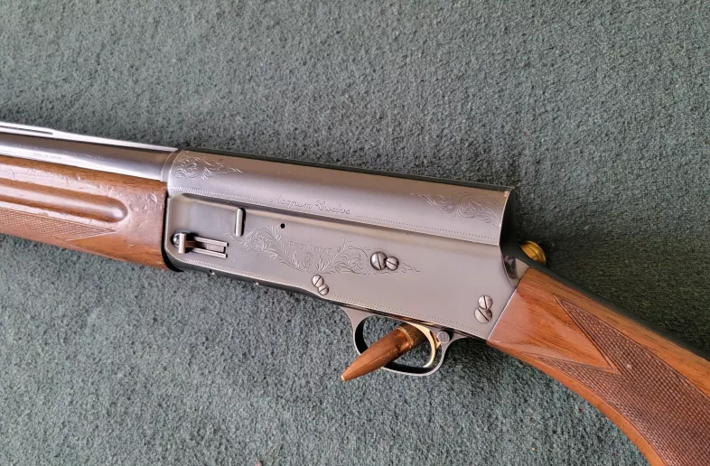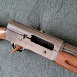 Short 3-day Auction - Browning auto-5 magnum twelve semi-auto shotgun. Wood forestock is cracked and needs to be replaced or repaired. Everything but the forestock is in great condition.Chambered in 12 Guage up to 3" shells. Gold trigger, Japan manufacture 1980. Located in Edmonton. Local pickup is welcome, shipping is extra. Contact me for a shipping quote. Non-restricted PAL required. Comes with triggerlock. Got lots of photos if you'd like another angle. Awesome skeet gun, has been hunted with for geese, very quick!