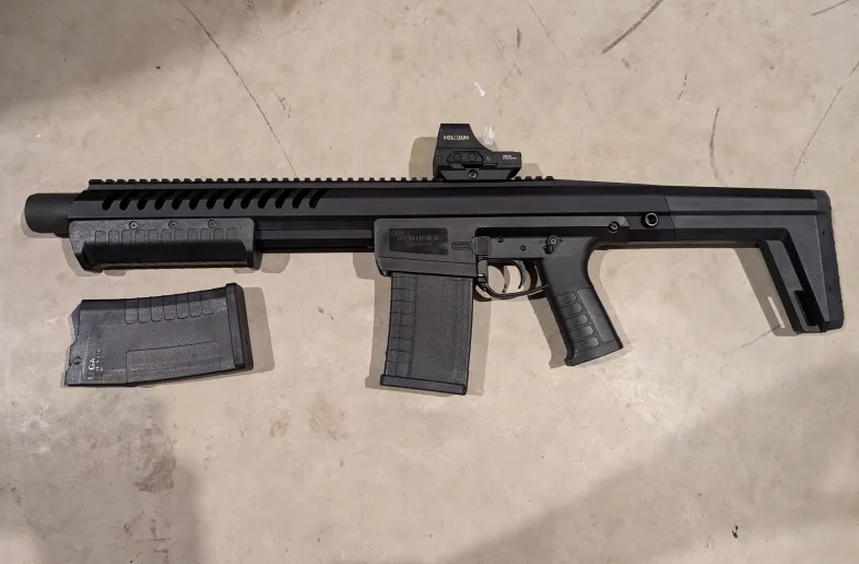 Selling an Iron Horse Sentry 12 shotgun with two 5 round mags but 8 rounders are available. Fun shotgun and very easy to break down for cleaning but I prefer classic stocks on shotguns. Asking 675 o.b.o. Will ship at buyers expense, not interested in trades. The red dot on it in the pictures has been sold separately. Last picture shows everything else I'm selling, Hera H6 rifle with three 10 round mags is all that's left.