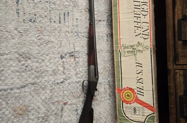 New and unfired. Made in 1984. 26" batrels choked imp.mod and imp.cyl. 3" chambers. Very stiff to open. Will need breaking in. Wood is dark and gorgeous... hard to see through pics. If u can read german the details are on the box. This is the english version made for the english market. Located in edmonton. Can ship.. can trade...will entertain payment plan.