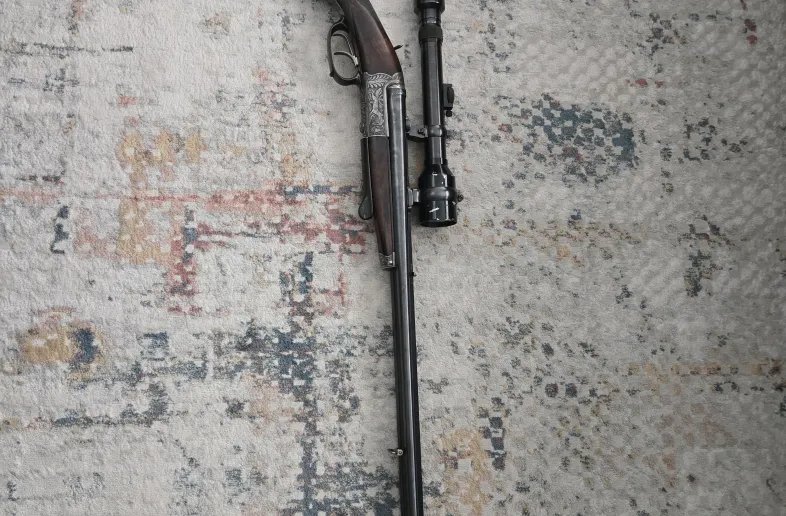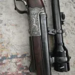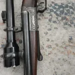 16 gauge by 7.8x57 side by side combo gun made in germany. Opens up with an underlever. Lever and trigger gaurd are horned. Beautiful peice made around ww2. Comes with original scope. Seems to function great. Wood grain is beautiful. Was never refinished so it does have a few marks here and there. No breaks, pitting nor cracks. Can ship. Will consider trades. Located in edmonton.