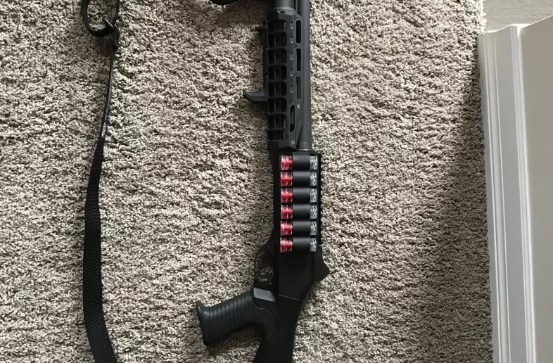 Benelli M4. Excellent condition. Mesa Tactical Shell Carrier. Oversize charge handle knob. Strike Industries Hayl Rail M-Lok handguard. Flashlight holder (no flashlight included). M-Lok handstop. Sling.