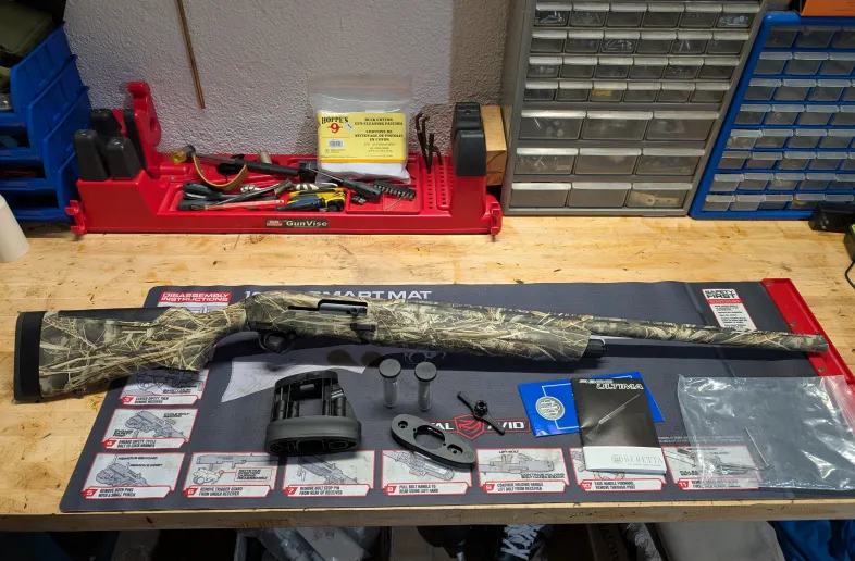 Beretta a300 ultima. Max-7 camo, 28" barrel with the kickoff recoil reduction system and the adapter to run the stock without it, it has the extended charging handle, extended bolt release and has a 3 inch chamber. The shotgun comes with 3 chokes, length of pull spacers, drop and cast shims, choke wrench and owners manual. 10/10 condition. I've owned it for a few years and only shot trap with it twice. Just don't use it enough to justify keeping it. Everything works as it should. Zero malfunctions.