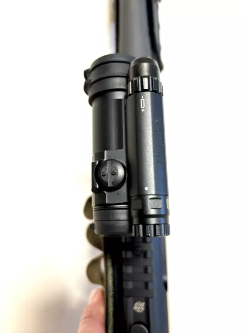 For sale, a fully set up Mossberg 590, has been used in dry fire training and zero'd at the range with 25 slugs. Action / magazine tube marks are from gentle dryfire.