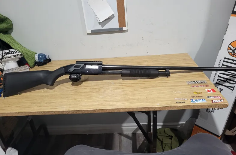 Mossberg maverick 88 with a saddle mount that has a shell holder and picatinny rail guns is smooth as butter has some scratches easily touched up guns works great no trades cash only can meet in gta through the week pick up in caledonia shoots up to 3" shells