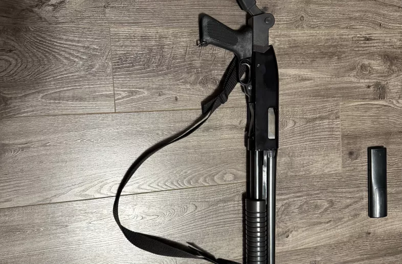 Beautiful Winchester defender shotgun tactical. It’s a unique setup with reliable features. 12 gauge shotgun. Foldable stock, bright tactical flashlight and sling. Lots of fun and lots of reliability.