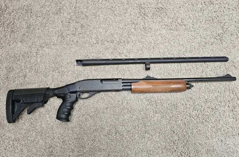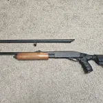 adjustable stock with 2 barrels. both smoothbore, 1 has front & rear sights.