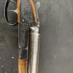 This firearm is engraved with a pheasant on one side lock cover and a goose on the other side.