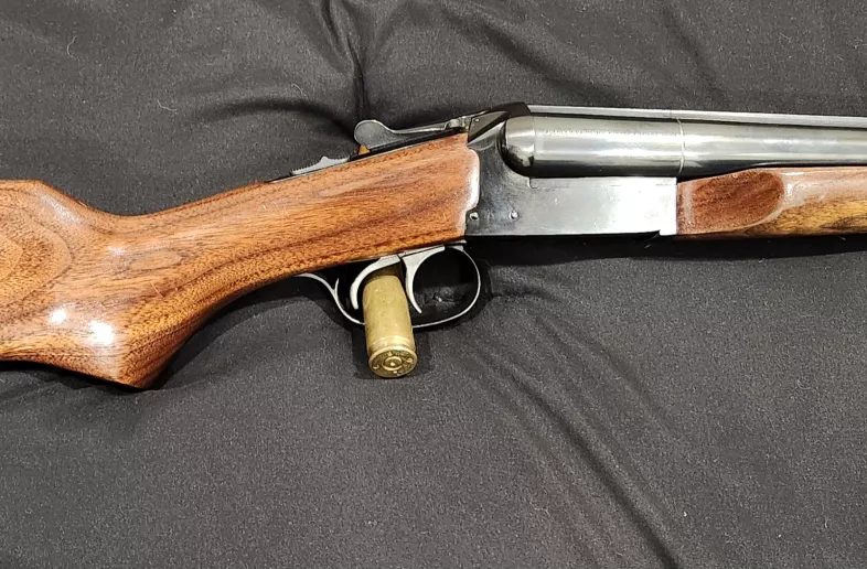 Very good condition boito a-680 coach 3 inch chambers 14" barrels. Walnut stock and forend, re-finished but looks great ! Blueing is very good .Hi viz green front sight . Comes with set of snap caps. 30" overall lenght . Locks up tight no cracks in stock or issues !