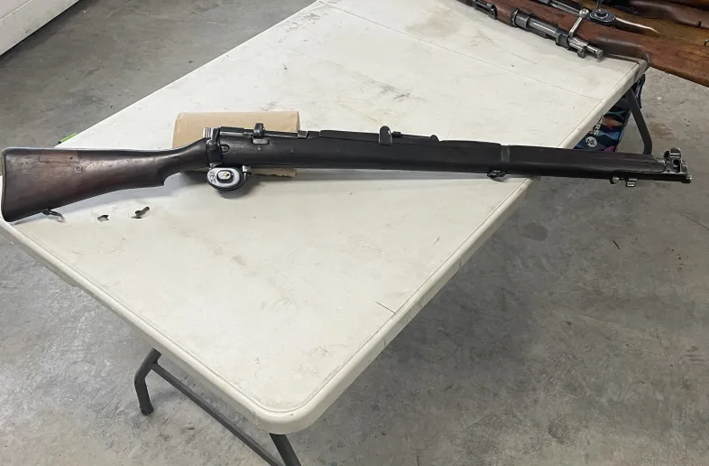 1944 built lee enfield #1 mark 3, converted to a 410 by ishapore factory India in 1948 for prisons or riot control. Clean and shiny bore. Still has some grease on the internals, has been sitting in my collection, could use a good cleaning by new buyer. Thinning out the herd, asking 1000 plus shipping negotiable, will be posting more milsurps and some Moderns in the coming days. Can provide more pics.