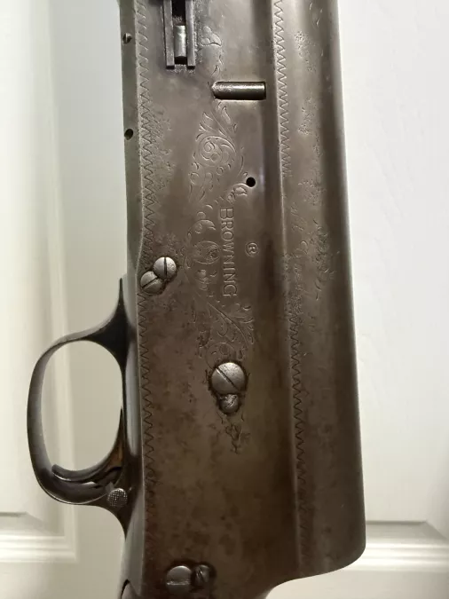 Looking at trading my 1957 Belgium made semi automatic A5 light 12. This is sought after being made in Belgium, not Japan. Beautiful wood, stocking forearm, no cracks. Original barrel, non-ribbed. Bead front sight. This is the light 12 meaning it is lighter than your standard A5. 12 gauge chambered up to two and three-quarter inch with a fixed modified choke. Right handed.Easy action. Perfect for any collector or someone who can appreciate craftsmanship. Itching on the trigger guard and receiver.