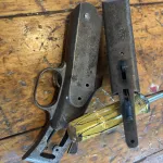 2 receivers from single shot shotguns. Some internals missing from each. One is a Stevens the other is a CIL 402.