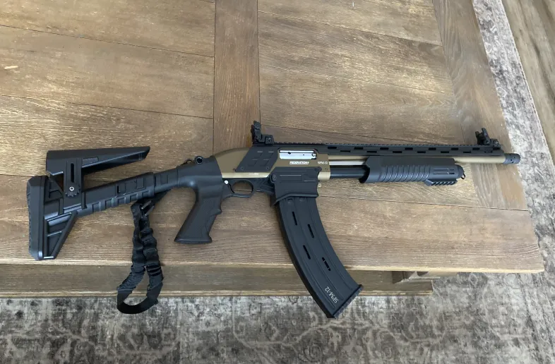 Practically brand new 3” chamber SPM-12 spring assisted pump action tactical 12ga. Comes with chokes, sling, flip up sights mounted on picatinny rail. comes with 1 10x round detachable magazine