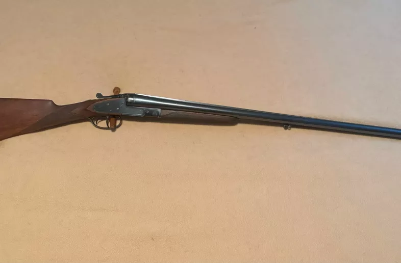 Old Fabrique Nationale d’Armes de Guerre sidelock side by side. Made in Herstal Belgium. Dated 1922 according to punches. 12 gauge, 65mm chamber (2 1/2’’). 28’’ barrels with extractors, full and mod choke. Original finish and buttpad. 95%+ of original deep bluing remaining. Wood is near perfect. Metal have some light scratches and a small ding on the right barrel. Shiny bores no rust or pitting