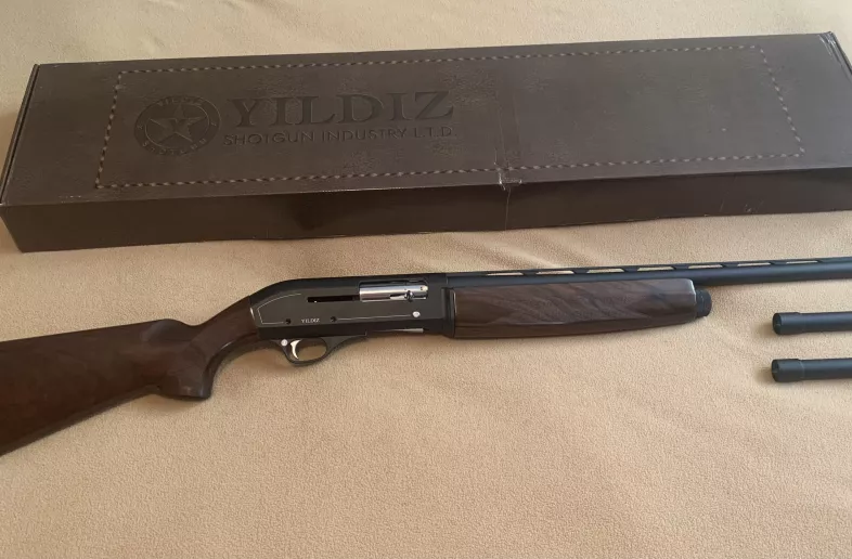 Yildiz A56 Magnum gas operated semi-auto 12 gauge shotgun. Beautiful oil finished selected walnut stock. Barrel length of 22’’ ic, 26’’ mod or 28’’ full with the extended chokes.