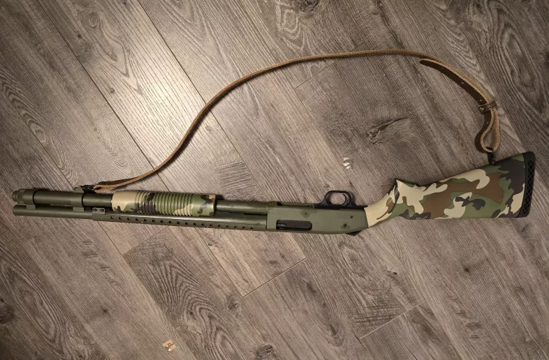 Brand New Mossberg 590 20 inch retro M81 camo and OD Green Cerakote