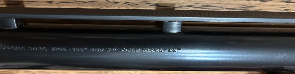 2x barrels: 1) the original 28” vent rib, Browning Invector Plus choke system, barrel 2) 22” vent rib, Browning Invector Plus system. Includes 3x Browning flush chokes: 1) improved cylinder, 2) modified, 3) full. The 22” barrel has a steel bead sight. The 28” barrel has a fibre optic sight mount/bracket. The fibre optic tube is missing but can be replaced.