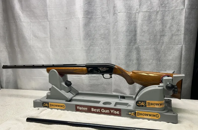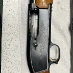 2 shot Auto load 12 GA. Black aluminum receiver in nice condition. Stock shows very well. No known cracks or gouges, but has normal usage wear.