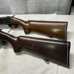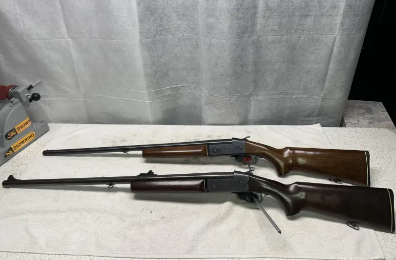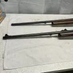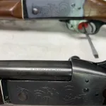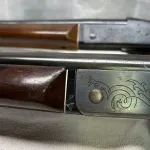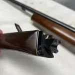 The 12 ga has a 30” barrel, full choke with iron sights, sling mounts. The plastic piece between the forend and the receiver broke and has been glued back together. Holds up well, have shot a round of trap with it like this.