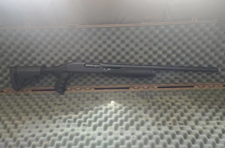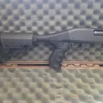 Adjustable stock with retaining bolt mod for no stock/just pistol grip option. Aftermarket stock and grip solid, 3-1/2" single hand firing with no flex.
