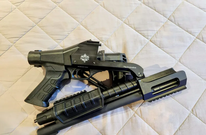 Non Restricted. New Never fired Rev Arms Folding "The executive" 10" barrel 12 gauge. Spring assisted pump 4+1 3" chamber. Paid $569 from Marstar plus tax and shipping. Have no use for it. $450 firm local or $475 shipped