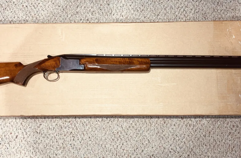 Winchester over under in 2 3/4" with adjustable Morgan butt pad. 30” barrel marked 'Full' and 'Full' with 2 beads.